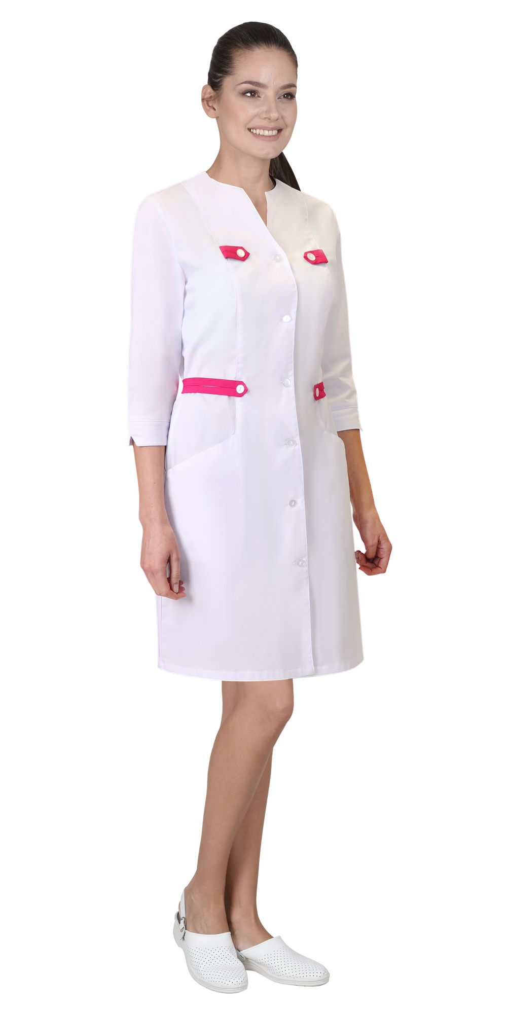 Халат "БРАЙТЛИ" женский белый с фуксией, тк.Твил стрейч (ЧЗ) ( 88-92/158-164)