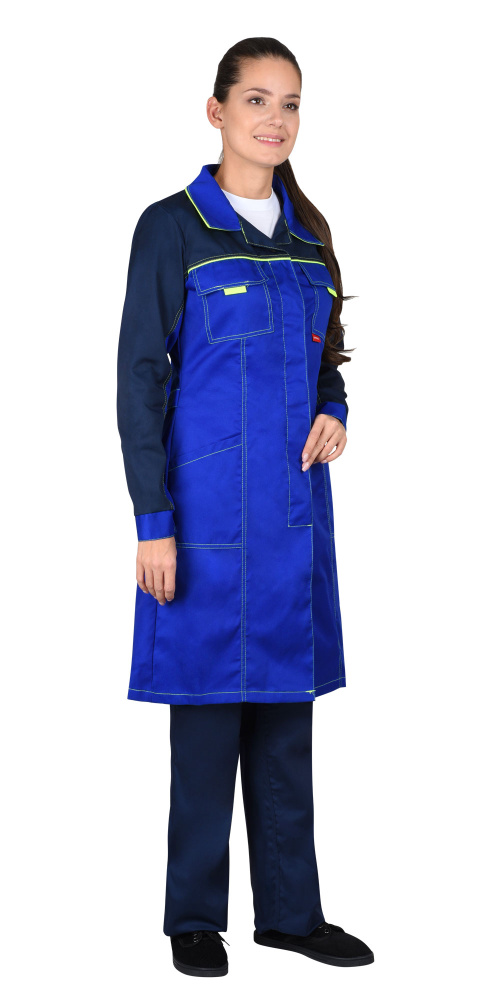 Халат "Ирина" женский васильковый с синим и лимонным кантом (ЧЗ) (104-108/170-176)