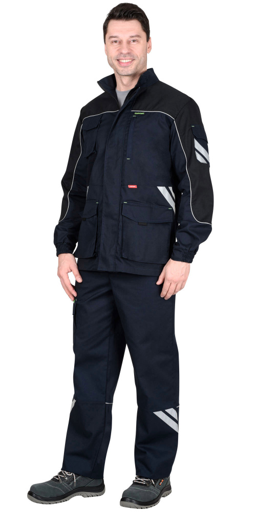 Куртка прямого силуэта, с центральной застежкой на молнию, накрытую ветрозащитным клапаном, с воротником стойка, с различными многофункциональными карманами, с элементами из СВ канта и СОП, обеспечивающие безопасность работы в условиях пониженной видимости.
