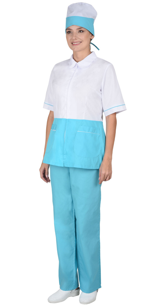 Костюм "Стефани" женский: куртка, брюки, колпак белый со светло-бирюзовым (ЧЗ) ( 80-84/158-164)
