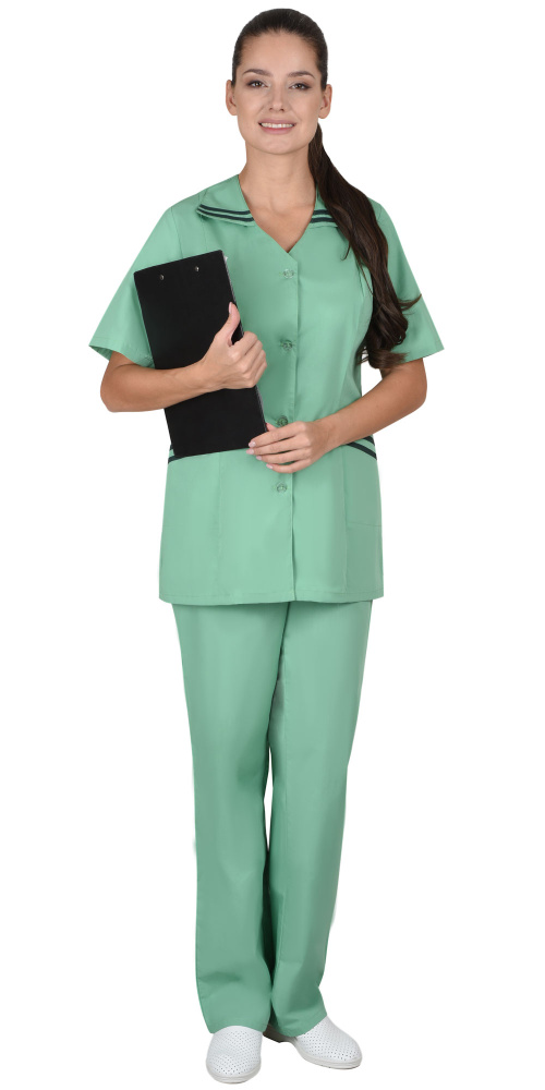 Костюм "Женева" женский: куртка, брюки светлая мята с тёмно-зелёным (ЧЗ) (128-132/158-164)