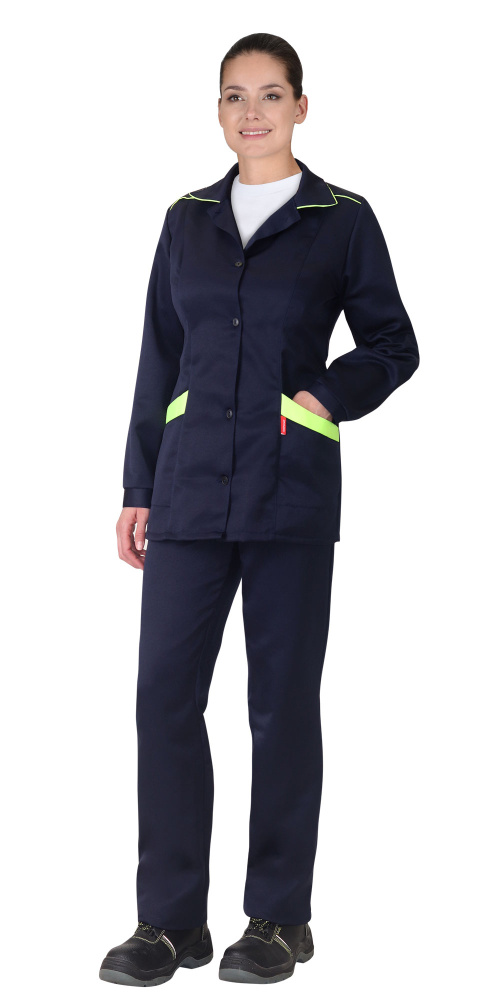 Костюм "ЗОЛУШКА" женский: куртка, брюки синий с лимонным кантом (ЧЗ) распродажа ( 96-100/170-176)