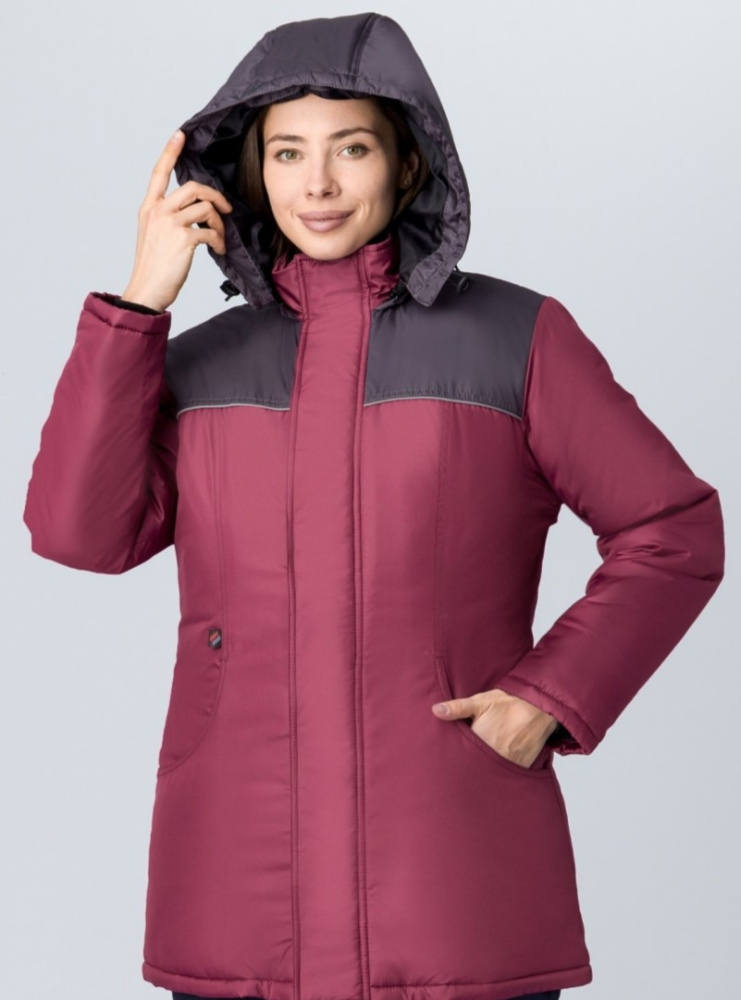 Куртка зимняя женская Снежана (тк.Дюспо), бордовый/т.серый (112-116/182-188)