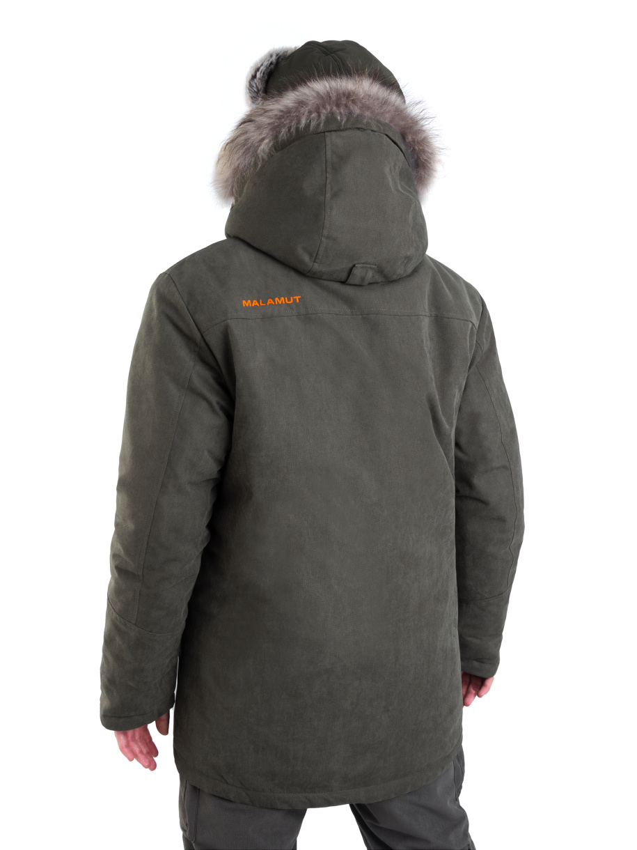 Универсальный функционал и современный дизайн позволяют носить куртку как на охоте, так и в городе. Мембранная ткань Исландия обеспечивает надежную защиту от ветра и мокрого снега. Помимо защиты от осадков, материал обладает высокой прочностью и практически бесшумен. Удлиненный крой, утяжка по талии, регулируемый капюшон с отделкой из натурального меха обеспечивают удобство и комфорт даже при температуре —35 С°.