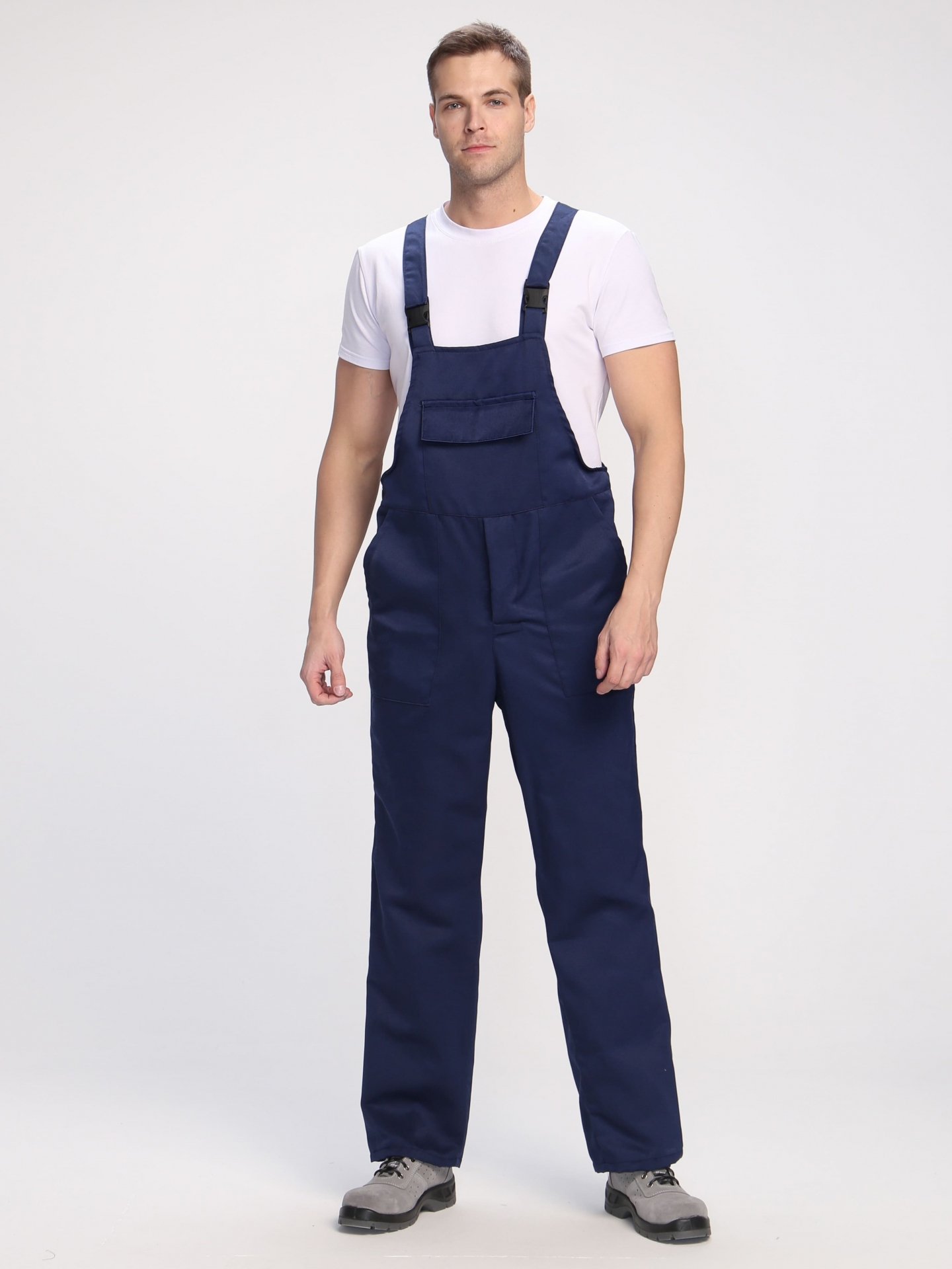 Полукомбинезон мужской рабочий «ИТР» изготовлен в соответствии с ГОСТ для защиты от общих производственных загрязнений и механических воздействий. Благодаря бретелям с регулировкой по длине и кулиске на резинке униформа прямого кроя подходит мужчинам разной комплекции, комфортна в работе, не сковывает движения. На груди полукомбинезона располагается большой закрывающийся на липучку карман, помогающий хранить под рукой все необходимые материалы. Дополнительные карманы по бокам подходят для размещения объемных предметов. Спецодежда застегивается на пуговицы спереди и сбоку, удобно надевается и снимается. Отстрочка в цвет ткани придает форме классический внешний вид и помогает комбинировать полукомбинезон с большинством курток.